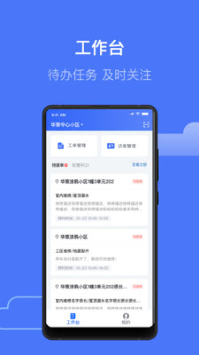 - 移动办公,随时随地处理业主问题;