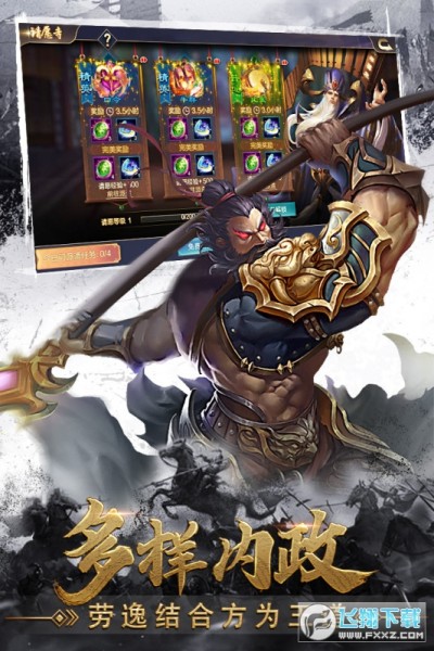 以军团为要务,设有职位分配、科技发展以及产业赋税;后宫系统,红颜出游小剧情趣味不断;皇宫系统,万民朝拜、官职俸禄、祭祀天地、朝敌国运等一系列内政玩法;还有逐鹿中原、群英争霸、水镜山庄、古迹探宝等众多互动玩法,期待您的探索。