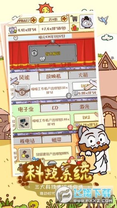 3.喵星人将从远古时代,一步一步的进化到现在的文明时代,从愚智未开,到懂得运用工具,再到刀耕火种,再到文明的时代,玩家将指引文明的进程,在各种大事件中做出抉择。