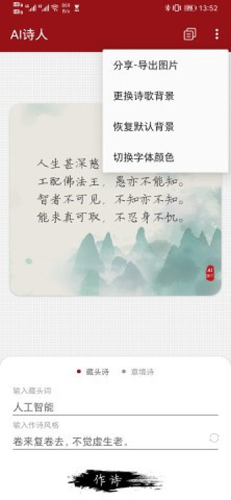 一个无须联网,基于人工智能的写诗应用。随时随地写藏头诗,意境诗。