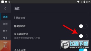 2.在当前表格找到最下方的显示桌面歌词即可。