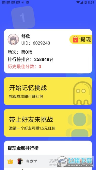 天天挑战游戏是一款趣味的闯关赚钱小游戏,游戏中玩家可以自由开启挑战,游戏玩法简单易上手,游戏中玩家需要在有限的时间内记住随机出现的数字,不断闯关即可领取游戏红包。对游戏感兴趣的话不妨点击下载试试!