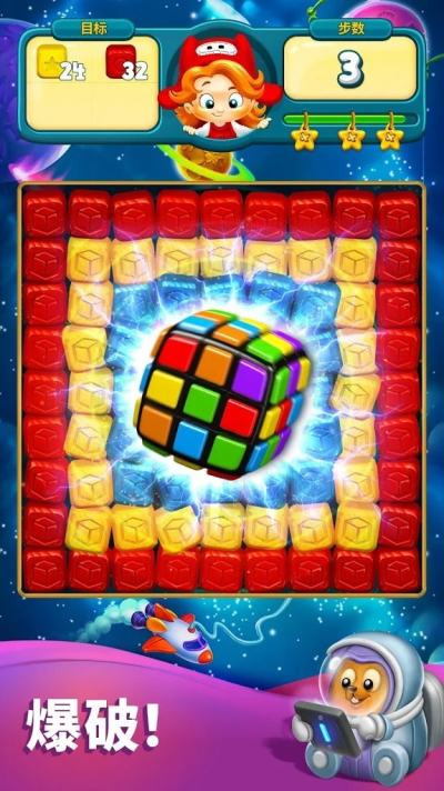 一款轻松休闲的消除类游戏,游戏玩法很简单,两款颜色相同,或者是多个颜色相同的的方块在一起就可以消除,并可以收集卡在那里的玩具,游戏画面清新有趣,喜欢消除游戏的玩家不妨一试。