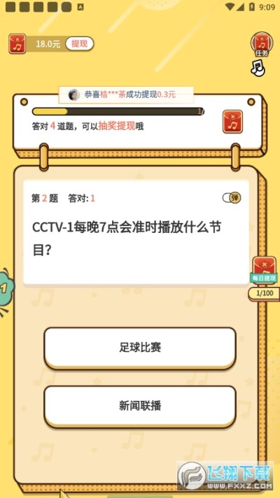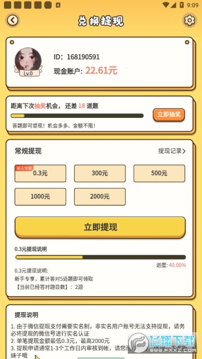 3、玩游戏赚钱,答对题目越多赚取的愈多,金币直接兑换现金没上限。