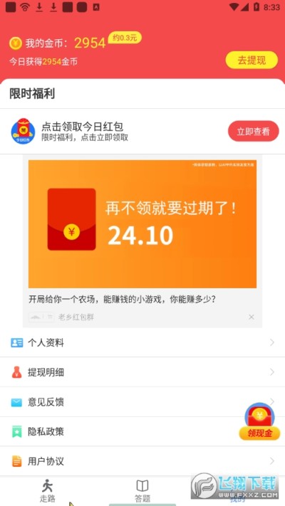 1、APP这里每天都有各种各样的步数任务,大家在完成之后系统也会自动发放收益;