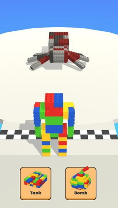 1. 在游戏中,玩家将获得颜色众多的积木,收集它们并将他们组装成一个积木小人。