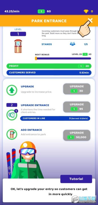 2.随着滑雪场的不断升级,相应的建筑也会不断解锁,升级这些建筑,你能够获得更多的金币