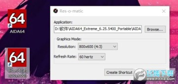 打开Reso,选择需要运行的程序,依次设置需要的分辨率、位深度、刷新率,然后点击Create Shortcut,即可生成一个快捷方式。