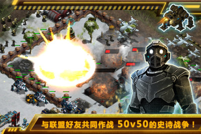 《战地征服》是国内震撼首发的一款百万欧美玩家所拥护的未来战争塔防策略游戏。以Unity3D引擎打造,实现iOS,安卓,越狱玩家同服,勾勒出万人在线的未来战争世界。与联盟好友共同作战,50V50的史诗战争!未来科技强力助阵,让您在游戏中变身大军阀,驾驭未来科技,横扫末日战场!