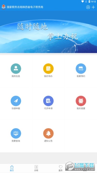 陕西税务APP为办理陕西省涉税业务的企业和自然人提供,用户可通过该应用办理部分涉税业务,企业可办理申报、文书、发票、其他业务等功能。自然人可办理车辆购置税、车船税、房产交易、代开增值税普通发票、其他业务等功能。