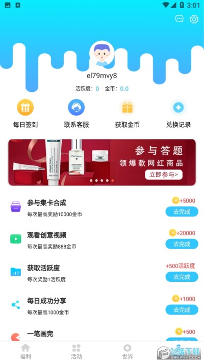 2、通过答题、签到、看攻略等方法轻松获得活跃度,可以领取app内的各项福利;