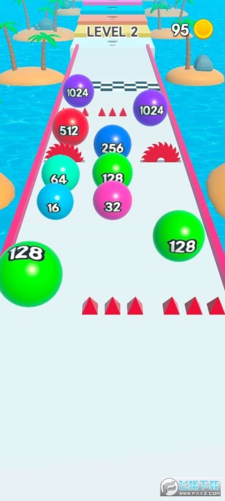 如果在途中你遇到与你相同数字的球并成功合并它的话,将会进一步变成更大的数字球。