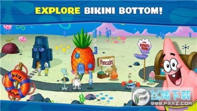 与蟹老板、派大星、章鱼哥、珊迪还有许多熟悉的面孔互动!