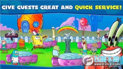 海绵宝宝大战蟹堡王(Spongebob- Krusty Cook Off)是一款高清模拟经营类手游,根据热门动漫IP海绵宝宝改编而来,这次海绵宝宝不只贩卖蟹堡王了,还有各种丰富的美食。一比一还原动漫中的背景,比如菠萝堡和餐厅等等,还有让你熟悉的章鱼哥和派大星哦。