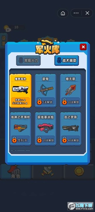 4、玩家还需要挑选自己想要的武器和技能,可以组合成强大的超级武器,获得更高的攻击。