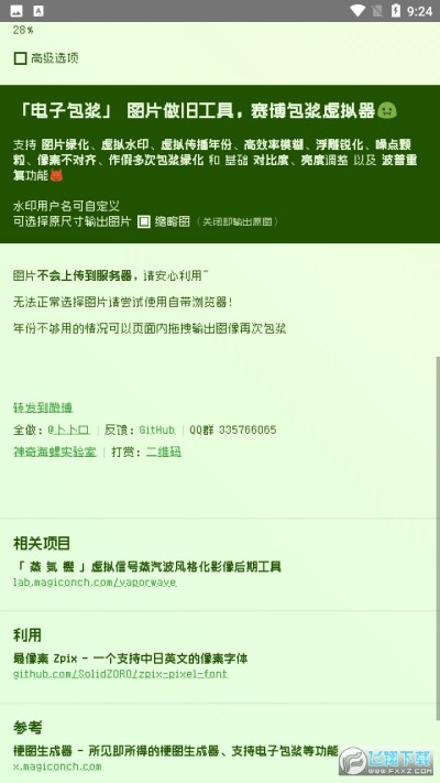 电子包浆生成器软件是一款可以快速处理图片的手机工具,一款超好用的图片包浆处理工具,软件操作简单易上手,玩家可以选择手机中任意图片进行包浆做旧处理,海量功能免费即可使用,给你的图片或者表情赋予年份感!喜欢快点击下载!