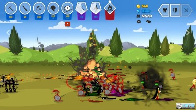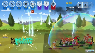 1、游戏中玩家可以亲临激烈刺激的战场,指挥你的火柴人勇士进行作战,而且游戏中有着各种火柴人士兵可供训练。