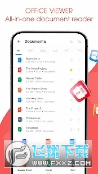 - 支持多种兼容的办公查看器格式,包括DOC、DOCX阅读器、TXT、XLSX、PPT、PPTX和PDF阅读器。