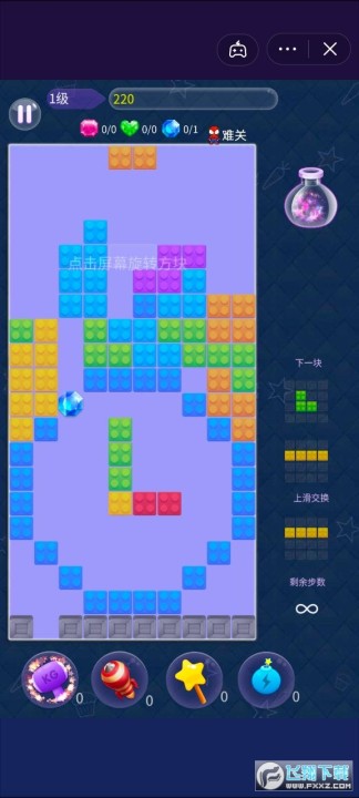 2、一次性消除掉更多的方块就是目标,单手就能完成所有操作,左右手进行灵活的切换。
