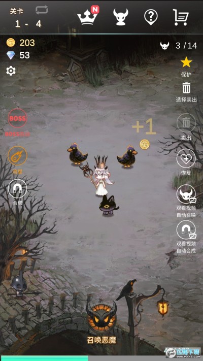 再守护一次破解版无限金币钻石版是一款卡通风格的放置玩法的策略塔防类游戏,玩家在游戏里需要守护自己的恶魔公主,通过合成相同的恶魔不断升级自己的恶魔,面对不断变强大的敌人提升自己,自由的放置恶魔面对BOSS的进攻,喜欢的小伙伴快来下载吧!