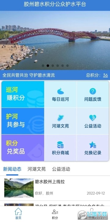 1、两区(市)的“碧水积分”平台设置了问题反馈、公益活动、有奖举报、积分兑换、河湖文苑等模块。