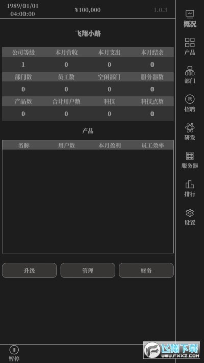 文字题材的模拟经营类游戏。玩家将在游戏中白手起家,成立自己的IT公司,并且一步一步将它壮大。起初你可以一个人编写简单的程序,赚到起始资金。然后就可以雇佣更多的员工。