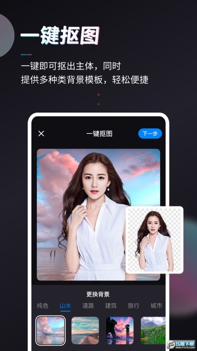 一键即可抠出主体,同时提供多种类背景模板,轻松便捷