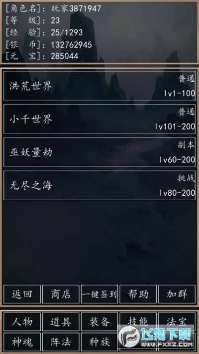 洪荒超级签到系统安卓版最新版是一款以洪荒为题材的文字类手游,游戏里玩家可以创建自己的角色,进入洪荒世界自由的展开冒险,挑战各种奇幻的怪物获取武器装备,不断的提升自己的能力进入更强的世界,丰富的技能法宝可以自由搭配,想要体验的小伙伴快来试试吧!