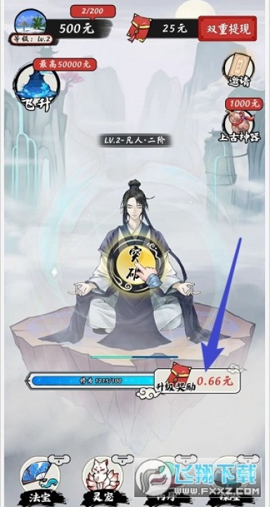 新人登录送了25元红包,简单看几个视频,突破修为凑够30再兑换。