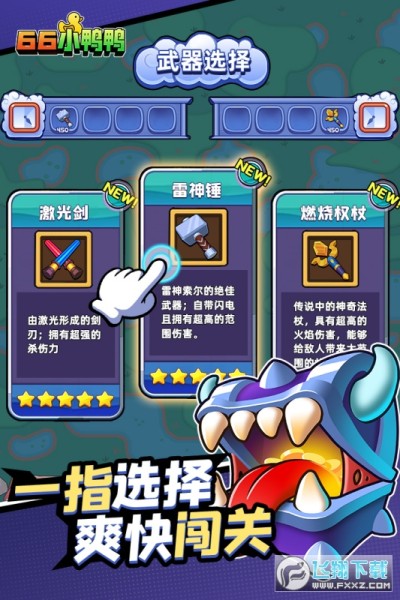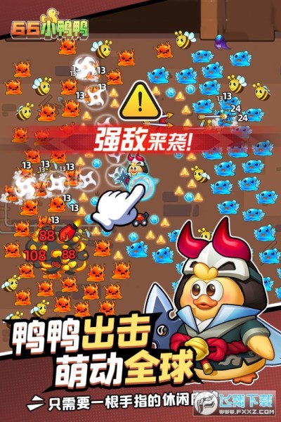 66小鸭鸭手游是一款休闲策略塔防游戏,海量的趣味关卡内容等你开启挑战,你可以不断升级你的鸭子战士武力值,海量的游戏装备以及道具可以获取,一键操作畅爽割草体验玩法!对游戏感兴趣的话不妨点击下载试试!