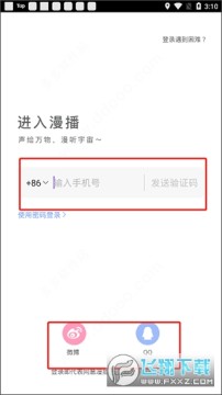 1、首先进行账号登录,支持使用手机号、微博、QQ三种登录方式;