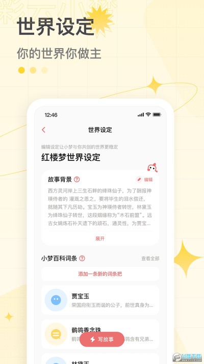 在文学的世界畅游时,你是否也会涌起一段妙想呢?在「彩云小梦」中,设定你的世界,开启一场属于你的冒险故事吧~你可以以这个世界设定开启故事,也可以与世界中的人物对话。