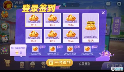 2、有丰富的棋牌玩法内容,登录送金币,每天自由竞赛都有大奖