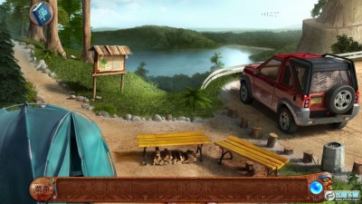 看完开始的剧情后进入游戏,点击帐篷进入寻找物品,完成后得到“车钥匙”;用车钥匙打开车的后备箱得到“拖绳”;