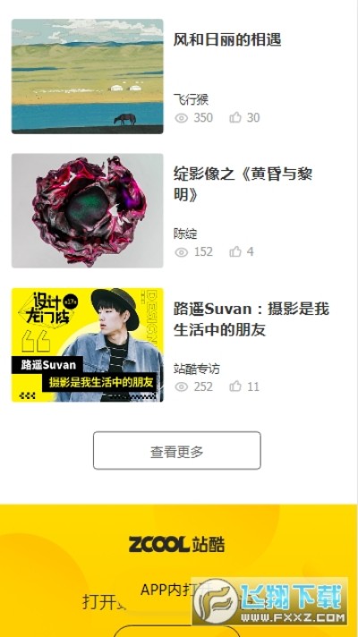 与站酷官方平台同步更新首页展示的优秀设计\创意内容,实时查看好友动态如:发布新作、推荐以及评论。