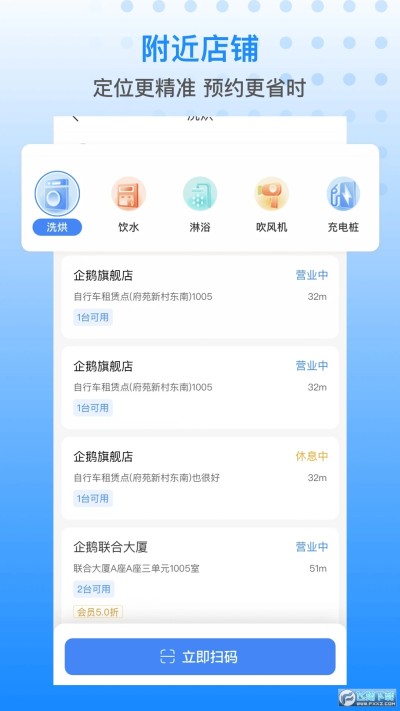 2、然后可以在这里查看洗衣机、烘干机、淋浴、吹风机所在的地理位置和设备数量;