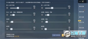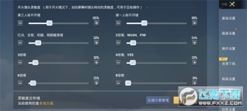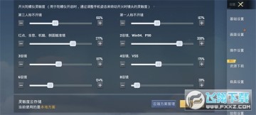 5、开火陀螺仪灵敏度:第三人称不开镜:100%;第一人称不开镜:100%;红点、全息、机瞄、侧面瞄准镜:50%;2倍镜、win94、p90:30%;3倍镜:21%;4倍镜、vss:14%;6倍镜:11%;8倍镜:10%。