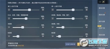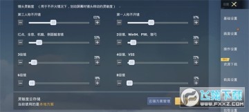 3、开火镜头灵敏度:第三人称不开镜:95%;第一人称不开镜:105%;红点、全息、机瞄、侧面瞄准镜:37%;2倍镜、win94、p90:27%;3倍镜:17%;4倍镜、vss:14%;6倍镜:12%;8倍镜:8%