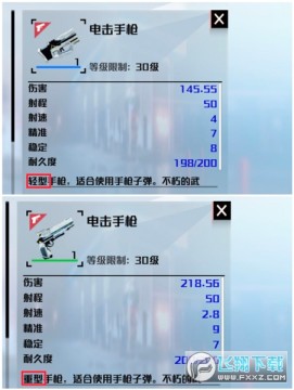 轻型手枪:射速较快,且能长按连射,但伤害相对重型较低