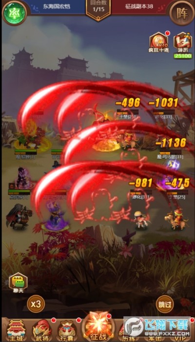 3. 三号位张飞,在前排承担伤害,血量越少伤害越高,输出能力强大
