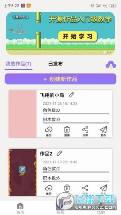 已发布的作品将会直接推送至“作品站”,人人皆可观看,方便互相交流学习。