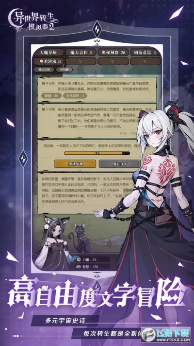 ÒìÊÀ½çתÉúÄ£ÄâÆ÷2ÄÚÖò˵¥×îаæÊÇÒ»¿îÒÔÒìÊÀ½çΪ±³¾°µÄÎÄ×Ö¾çÇéÀàÊÖÓΣ¬ÓÎÏ·ÀïÍæ¼Ò¿ÉÒÔ½øÈëµ½²»Í¬µÄÒìÊÀ½ç¿ªÆôеÄÈËÉú£¬×ÔÓɵÄÑ¡Ôñ²»Í¬µÄÌ츳£¬ÔÚÒìÊÀ½çÀïÃæ¶ÔËæ»úµÄʼþ×÷³ö×Ô¼ºµÄÑ¡Ôñ£¬»¹ÓÐQTEµÈ¿ìËÙ·´Ó¦Ê¼þºÍ¸÷ÖÖ½âÃÕСÓÎÏ·£¬´òÔìÎäÆ÷·¨±¦ÌåÑé¿ÉÊÓ»¯µÄÕ½¶·£¬¿ìÀ´ÌôÕ½¸ü·á¸»È«ÃæµÄÒìÊÀ½ç°É£¡