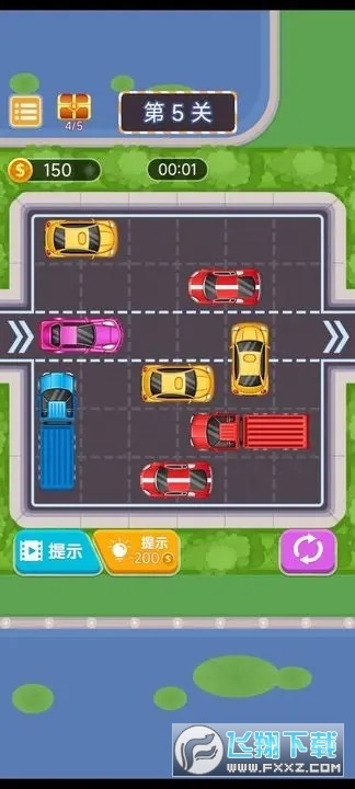 用手指挪动车,解开每一个关卡就可以闯关成功了。
