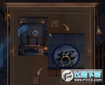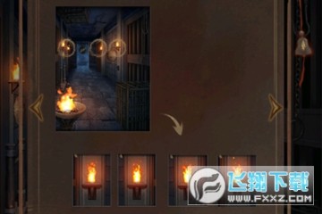 4、在右侧牢房和公孙剑交谈,得到火折子,点击场景中的四个火把,观察下方的图案。