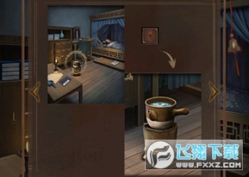 1、完成剧情之后,点击右边的火盆,将手上的绳子烧断,然后拾取左侧的一桶水。