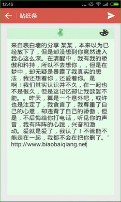 表白墙是一款手机表白软件,大家可以通过它轻轻松松地向自己暗恋的对象表白,而且这里还有各种浪漫创意和甜言蜜语供大家选择,相信大家一定可以表白成功的!