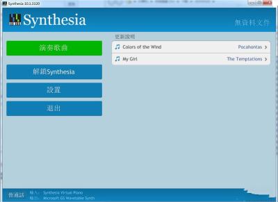 Synthesia钢琴软件可以给不懂五线谱的人知道怎么弹钢琴,支持任何MID文件的导入和弹奏。如果你有MIDI键盘或者MIDI输出口的电子琴,就能与之连接进行弹奏练习,练习效果非常好。Synthesia钢琴软件自带了上百首MID曲子,你可以把它看做为一个娱乐消遣的小游戏,也可以花心思研究一下,将之变成学钢琴的利器