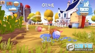 1、萌系风格的竞技游戏,采用多人联机的玩法,大家可以选择扮演小猪或者农场主;