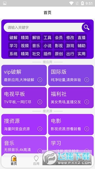 1、应用程序首页,上面有各个类型的资源,点一下就能跳转专区。