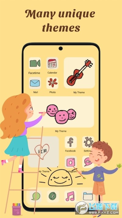 2、支持个性化设置,更改图标、主题和壁纸,发挥想象力,自由diy创作。